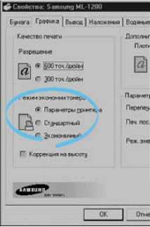 2 Щелкните на вкладке Graphic (Графика) и выберите параметр Toner Save Mode (Режим экономии тонера). Вы можете выбирать для него следующие опции: