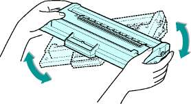 3 Осторожно потрясите его из стороны в сторону пять или шесть раз, чтобы перераспределить тонер внутри.