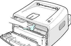 3 Сухой тряпкой, не содержащей пуха, удалите пыль и брызги тонера из его полости.