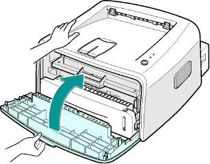 2 Откройте верхнюю крышку и выньте его. Протолкните его вниз и выньте его из принтера.