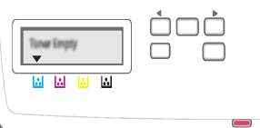 Состояние отображается индикатором состояния и сообщениями дисплея. Если уровень тонера низок или необходимо заменить, индикатор состояния загорается красным цветом, и на дисплее появляется соответствующее сообщение. Одна или несколько стрелок на дисплее показывают, какой требует особого внимания или замены.