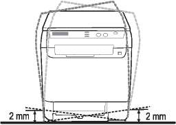 Поместите устройство на плоскую и устойчивую поверхность, чтобы избежать наклона более чем на 2 мм (0,08 дюйма). В противном случае это может повлиять на качество печати.