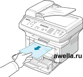 1 Откройте и закройте переднюю дверцу. Устройство автоматически удалит смятую бумагу. Если бумага не выходит, перейдите к шагу 2.
