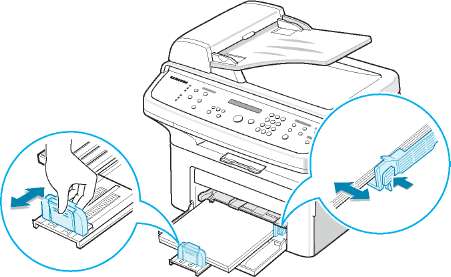 • Не прижимайте ограничитель размера бумаги слишком плотно. Это может привести к деформации бумаги.