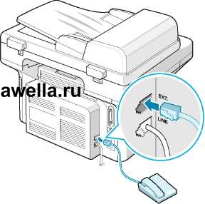 Для того чтобы аппарат принимал не только факсимильные сообщения, но и обычные звонки, подключите к аппарату телефон и автоответчик.