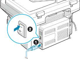 1 Подключите один конец трехжильного шнура питания к разъему питания устройства, а другой — к розетке с заземлением.