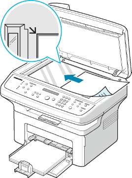 Отправляемый по факсу документ можно загрузить в автоподатчик или поместить на стекло экспонирования. В автоподатчик можно загрузить до 30 листов бумаги плотностью 75 г/м2. На стекло экспонирования можно поместить только один лист.