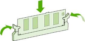 Чтобы извлечь DIMM, необходимо сначала открыть зажимы.