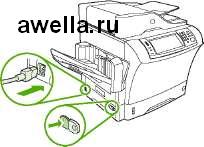 Модели серии HP LaserJet M4345 МФП поставляются с установленными сетевыми устройствами. Разъем встроенного ввода/вывода может использоваться для подключения дополнительного сетевого устройства помимо уже встроенного в принтер.