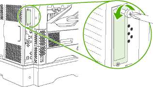 В принтере существует также разъем, позволяющий расширить сетевые возможности принтера. Разъем можно также использовать для реализации дополнительного подключения к сети, например беспроводного подключения, установки сетевой карты или коммуникационной карты для подключения последовательных устройств или AppleTalk.