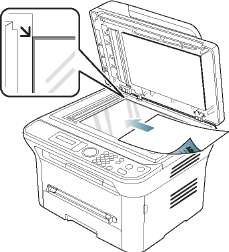 2. Поместите оригинал на стекло экспонирования лицевой стороной вниз. Выровняйте документ по направляющим меткам в левом верхнем углу стекла.
