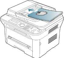 2. Загрузите оригиналы в автоподатчик лицевой стороной вверх. Нижний край пачки оригиналов должен совпадать с отметкой размера бумаги на входном лотке для документов.