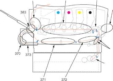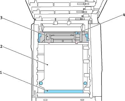 Для получения доступа к пути прохода бумаги необходимо удалить все четыре печатных барабана.