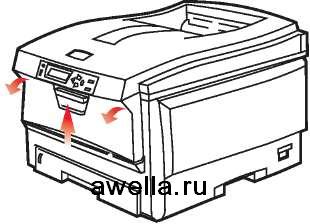 9. Опустите верхнюю крышку, но не нажимайте на нее до защелкивания. Это защитит печатные барабаны от излишнего воздействия комнатного света во время проверки оставшихся областей на наличие застрявшей бумаги.