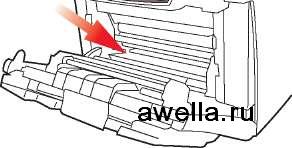Если лист почти полностью вошел в печку (виден только короткий край листа), то не пытайтесь вытянуть его обратно. Выполните следующий шаг для удаления листа из задней части принтера.