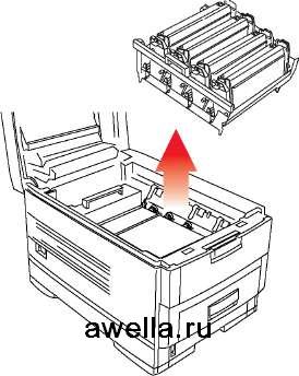 Проверьте печатный барабан на предмет правильности установки и др. Будет указан цвет барабана.