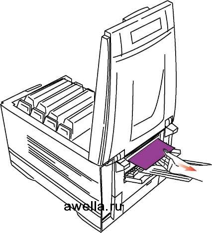 Отрегулируйте направляющие лотка или устройства ручной подачи.