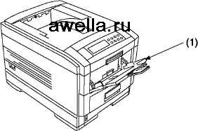 2. Откройте многоцелевой лоток (1) и удалите защитный лист бумаги.
