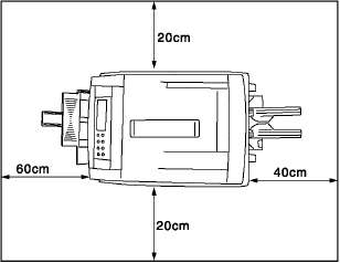 Размещайте принтер на плоской поверхности достаточной площади и прочности, которая соответствует размерам и весу принтера. Вес принтера составляет около 48 кг. Вокруг принтера должно быть достаточно свободного места для доступа к принтеру и его технического обслуживания.