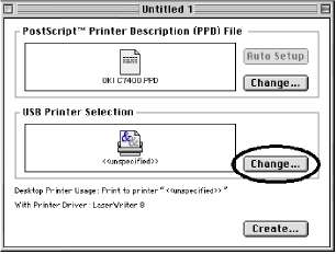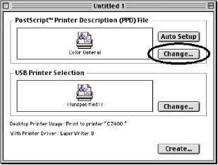 Подведите указатель мыши на значок [PostScript Printer Description (PPD) file] (Файл описания принтера PostScript (PPD)) и выберите [Change] (Изменить).