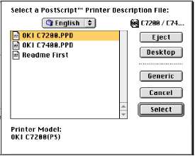 Возможно использование драйвера принтера Adobe PostScript или драйвера LaserWriter. Однако для использования драйвера принтера Adobe PostScript версии 8.7 следует использовать операционную систему MacOS версии 8.7 или выше.