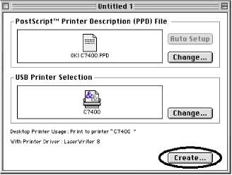 Выберите [Create] (Создать), и рядом с именем принтера появится значок.