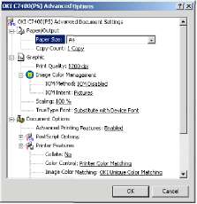 (d) Выберите желаемое управление цветом и цветовое соответствие из [Printer Features (Возможности принтера)].