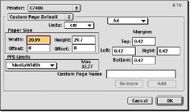 В [Paper Size (Размер бумаги)], Выберите [PostScript Custom Page Size (Размер бумаги, задаваемый пользователем для PostScript)]. Введите размеры по ширине и высоте в [Custom Page Size Dimensions (Размер, задаваемый пользователем)], затем укажите [Paper Feed