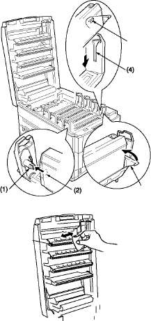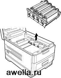Откройте верхнюю крышку и вытащите четыре печатных барабана.