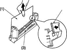 Нажмите на петельку (2) внутрь и вытащите запирающую пластину (3) из печатного барабана.