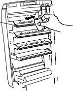 Когда уровень тонера снижается, на панели управления появляется сообщение *** TONER LOW (Низкий уровень тонера), где *** - наименование цвета. Если печать продолжается без замены тонера, то появляется надпись CHANGE *** TONER и печать прекращается. В зависимости от операционного окружения, печать может ослабеть до выдачи этого сообщения. На этой стадии вытащите картридж и проверьте, не пуст ли он; если пуст, то он требует замены.