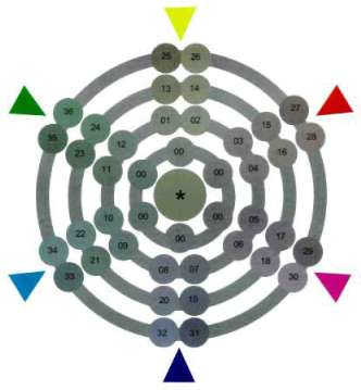9. При необходимости повторите описанную выше процедуру до тех пор, пока цвет центральной круглой вставки не будет соответствовать круглому образцу с номером 00.