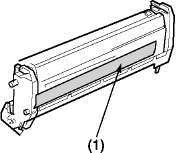 Запечатайте стык между печатным барабаном с помощью клейкой ленты (1) для предотвращения просыпания тонера во время транспортировки.