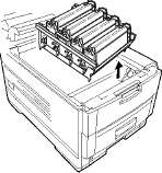 Установите новый печатный барабан. Будет указан цвет.