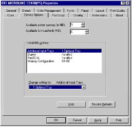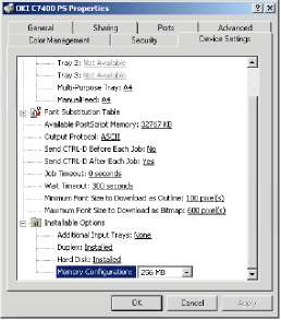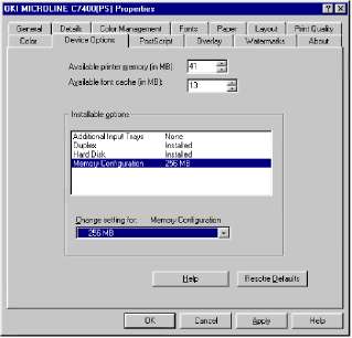 После установки дополнительной памяти, размер памяти в драйверах принтера Windows PostScript и Macintosh должен быть изменен.
