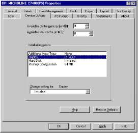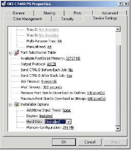 После установки жесткого диска и до начала его использования следует настроить драйвер принтера следующим образом.