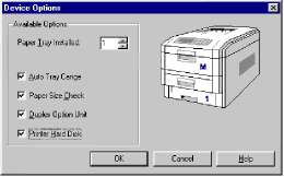 После установки дополнительных бумажных лотков и до начала их использования следует настроить драйвер принтера следующим образом.