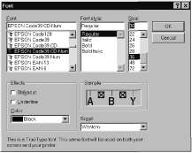 3. Выберите шрифт EPSON BarCode, который хотите использовать, затем установите размер шрифта и щелкните OK.