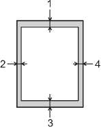 Цифрами на приведенном ниже рисунке показаны недоступные для сканирования и непечатные зоны. Размер этих зон зависит от формата бумаги и параметров в используемом приложении.