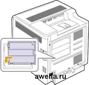 Принтер имеет два разъема для памяти, в одном из которых изготовителем уже установлен модуль памяти. Для увеличения объема памяти можно установить дополнительный модуль в свободный разъем. Настоятельно рекомендуется устанавливать дополнительный модуль памяти только в свободный разъем, не извлекая установленный производителем модуль. Если объем памяти в вашем принтере 128 Мб, и вы установите модуль на 512 Мб, объем памяти увеличивается до 640 Мб.