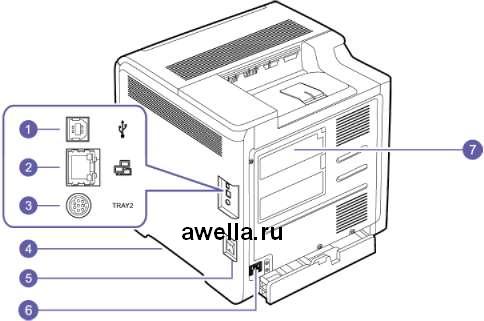 На рисунке представлен принтер с дополнительными компонентами. Символом * обозначается дополнительное устройство.