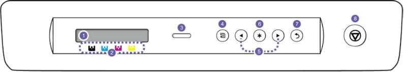 Цвета тонера: Индикатор цветов тонера, расположенный ниже LCD дисплея, работает вместе с сообщениями на дисплее.