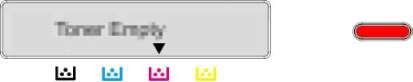 Состояние отображается с помощью индикатора состояния и LCD дисплея. Если тонер заканчивается или его необходимо заменить, индикатор состояния горит красным светом, а на дисплее отображается соответствующее сообщение. При этом указатель в виде стрелки (или указатели) показывает на соответствующий цветной тонер, который требуется заменить.