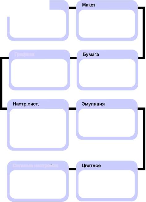 Позволяет распечатать схему, где показаны структура меню и текущие настройки принтера.