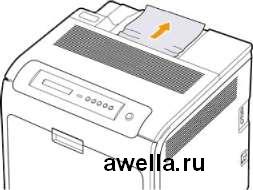 Если замятие бумаги происходит в области выхода, вытащить замятую бумагу можно следующим образом.