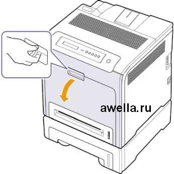 Откройте и закройте плотно переднюю крышку. Принтер возобновит печать документа.