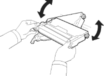 3. Возьмите за обе ручки и осторожно встряхните его несколько раз из стороны в сторону для равномерного распределения тонера.