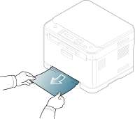 6. Возьмите бумагу обеими руками и вытяните ее вправо из зоны подачи.