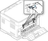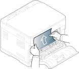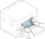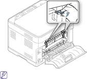 Если замятие бумаги произошло в области термофиксатора, вытащить замятую бумагу можно следующим образом.