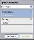 3. Щелкните Добавить. При сохранении набора настроек предустановки сохраняются все текущие настройки драйвера. При нажатии Добавить кнопка Добавить изменится на Обновить. Выберите дополнительные опции и нажмите кнопку Обновить, настройки добавятся в сделанные вами предустановки. Для того чтобы применить сохраненный набор настроек, выберите его из раскрывающегося списка Предустановки. После этого настройки печати принтера изменяются в соответствии с выбранным набором. Чтобы удалить сохраненный набор параметров, выберите его в раскрывающемся списке Предустановки и нажмите кнопку Удалить. Для восстановления исходных параметров драйвера принтера выберите пункт По умолчанию из раскрывающегося списка Предустановки.